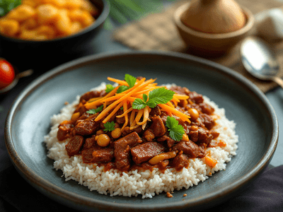 Devilled Beef is a vibrant and fiery dish from Sri Lanka, celebrated for its bold flavors and colorful presentation. Originating from local taverns and eateries, this curry has become a staple at gatherings, especially when quick, flavorful dishes are desired. Devilled Beef is known for its spicy, tangy sauce, tender beef strips, and an array of crisp vegetables. Traditionally, it’s enjoyed as a side or main dish with rice, string hoppers, or roti. Sri Lankan cuisine emphasizes the balance of heat, acidity, and sweetness, and Devilled Beef encapsulates this philosophy beautifully. The dish is a testament to the country’s love for robust spices like chili, black pepper, and curry leaves, which are combined with onions, peppers, and garlic for a deep, complex flavor. Its popularity stretches across the island, from coastal towns to bustling cities, making it a must-try for anyone seeking authentic Sri Lankan food. For health-conscious food lovers, Devilled Beef offers high protein from lean beef, vitamins from fresh vegetables, and the option to customize spice levels. Its lively taste and healthy adaptations make it ideal for calorie tracking, meal prepping, or introducing Sri Lankan flavors to an international audience.