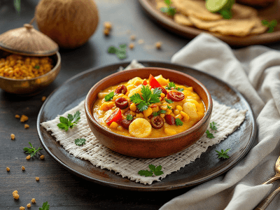 Sweet Pongal, known locally as 'Sakkarai Pongal', is a cherished dessert in Sri Lankan cuisine. Traditionally prepared during festive occasions and temple offerings, this dish combines rice, split yellow moong dal (mung beans), jaggery, and coconut milk for a naturally sweet, aromatic treat. The result is a comforting, mildly spiced pudding, perfect for sharing with family and friends. In Sri Lanka, Sweet Pongal is enjoyed by all ages and is often prepared during the harvest festival, symbolizing prosperity and gratitude for nature’s bounty. Sweet Pongal stands out for its unique combination of wholesome ingredients and gentle spices such as cardamom and nutmeg, which infuse each bite with warmth and depth. The addition of cashews and raisins provides delightful texture contrasts, while coconut milk offers a creamy finish without relying on heavy dairy. This version of Sweet Pongal is made with health-conscious choices in mind, using less sugar and a balance of complex carbohydrates and plant-based proteins. The result is a lighter, yet authentic, take on a beloved Sri Lankan dessert.